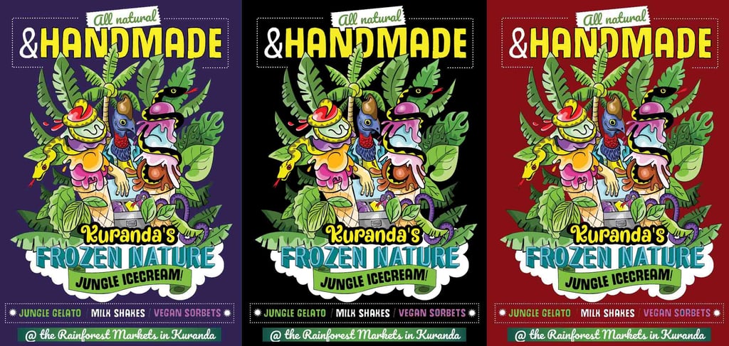 I created a funky typography consisting of salty crocs, 3 types of local Far North Queensland snakes and the omnipresent brush turkey.